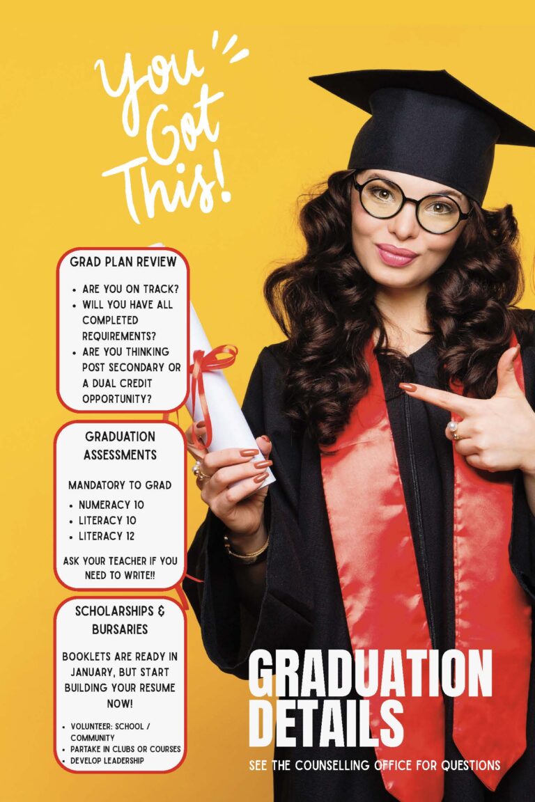 If you will be graduating this year, you need to confirm which provincial assessments you will need to write. The Numeracy and Literacy Assessments will be offered in November, January, April and June. Please contact The Grove at 250-746-0277 or email at grovesecretary@sd79.bc.ca before you intend to write an assessment to add your name to our list.